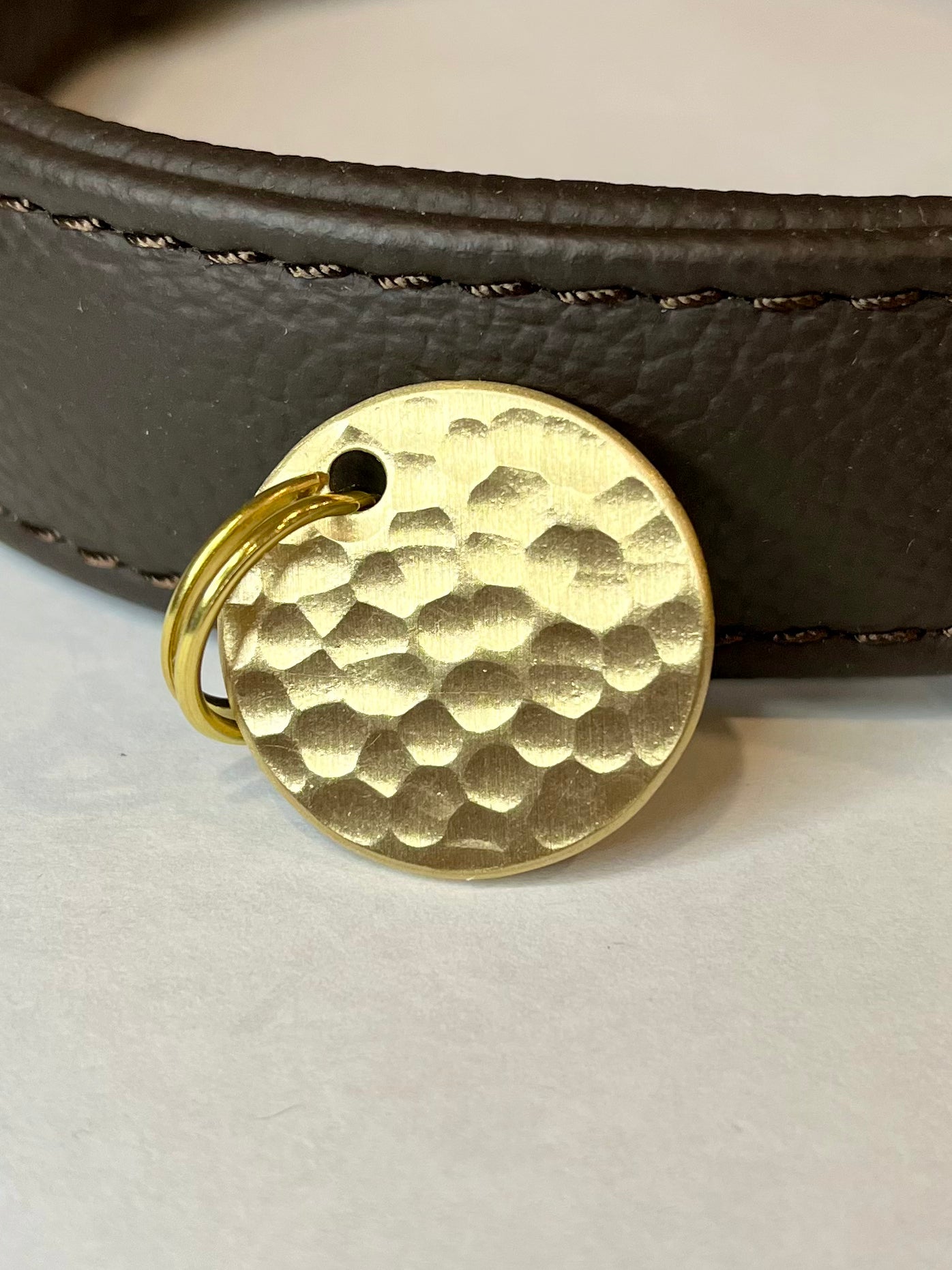Give your dog a durable, timeless ID tag that’s made just for them. This solid brass dog ID tag features a distinctive hammered finish and is fully customizable with precision laser engraving. From standard name-and-number layouts to special requests, we do our best to accommodate any engraving you have in mind.